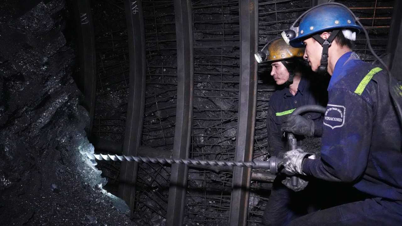 Cặp thợ khoan Phân xưởng đào lò số 1 tại Lò dọc vỉa vận tải mức +0 vỉa 6 F10 Khu II Giếng Cánh Gà
