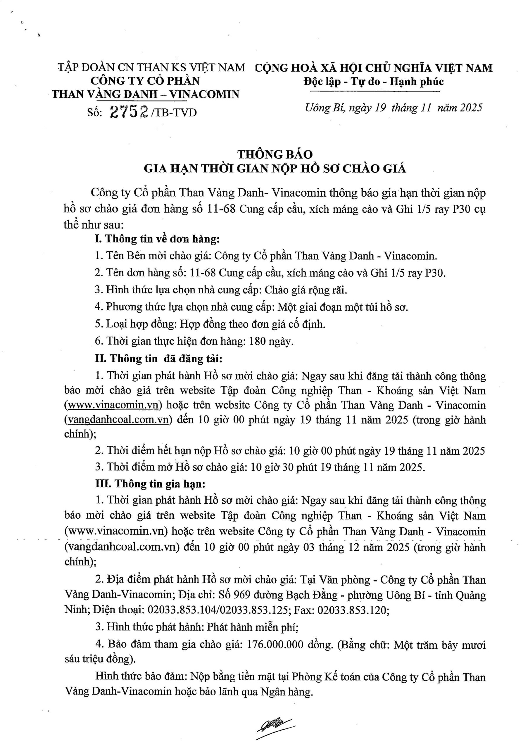 Thông báo gia hạn nộp hồ sơ Cung cấp cầu, xích máng cào và Ghi 15 ray P30.