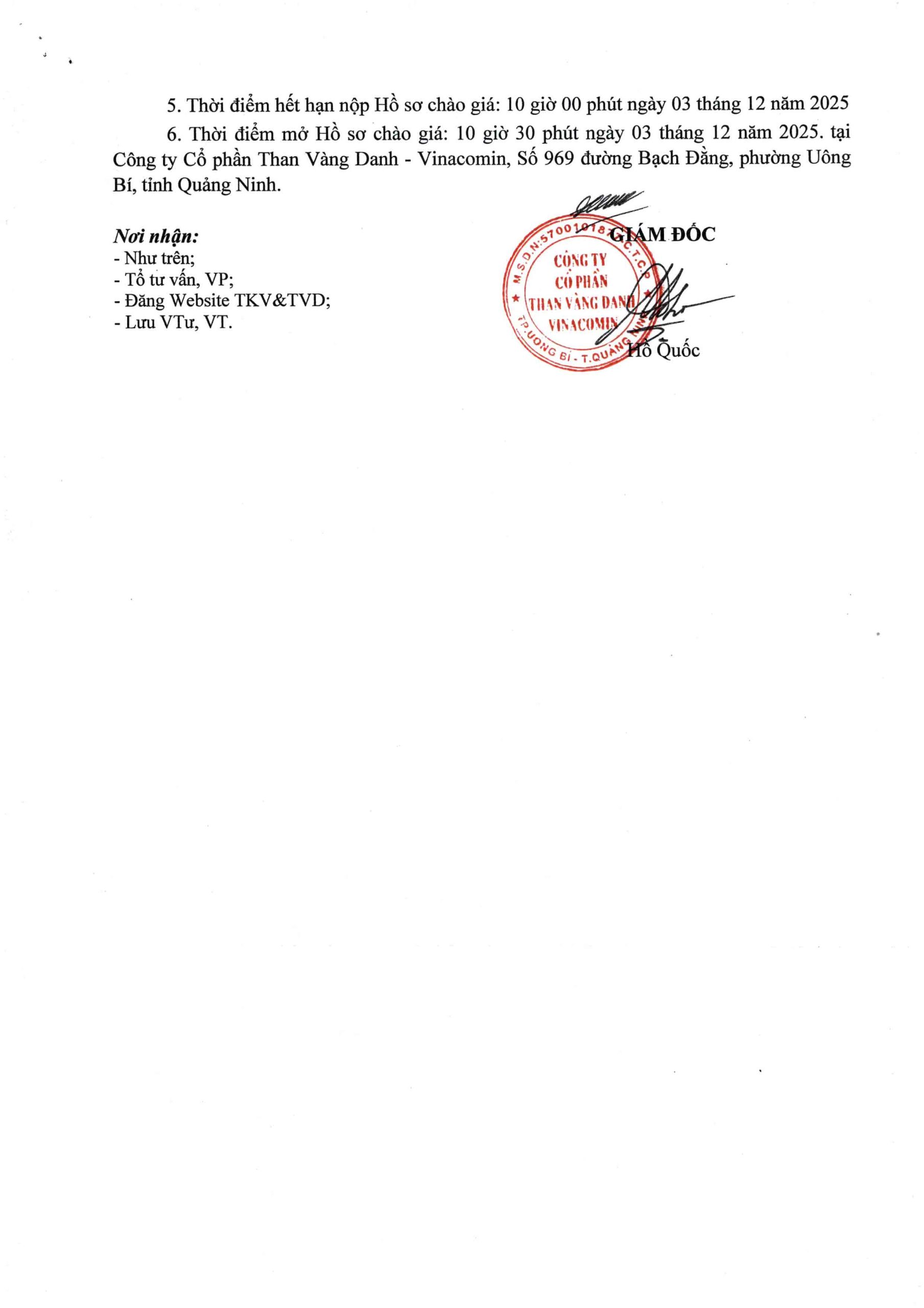 Công ty Cổ phần Than Vang Danh – Vinacomin